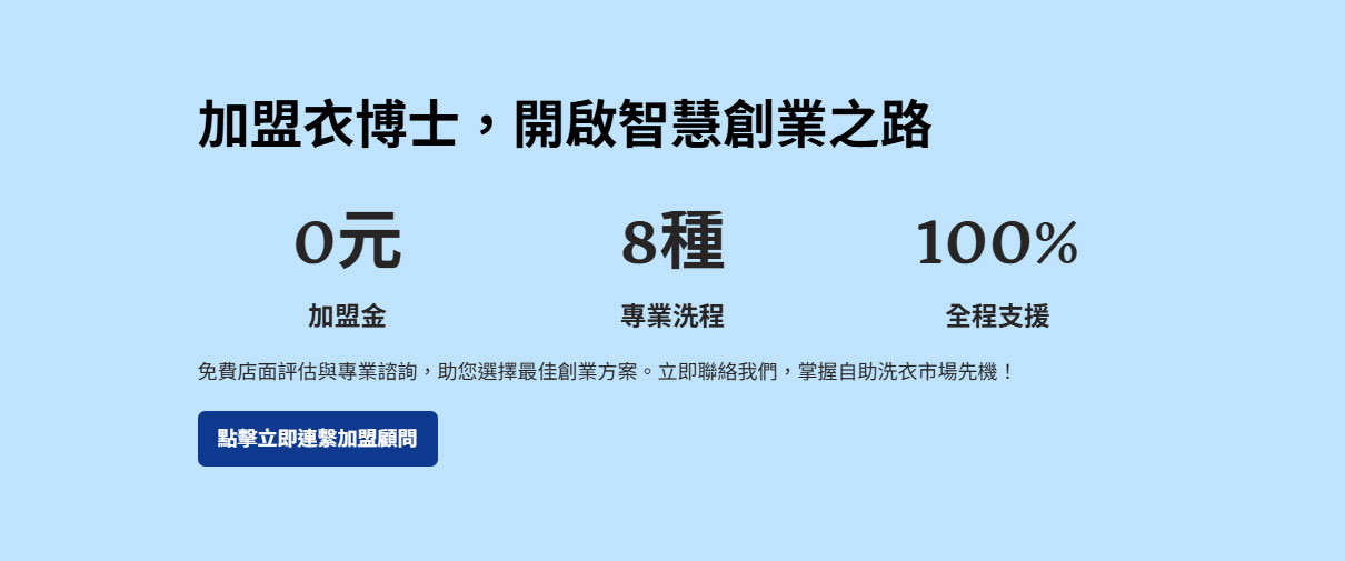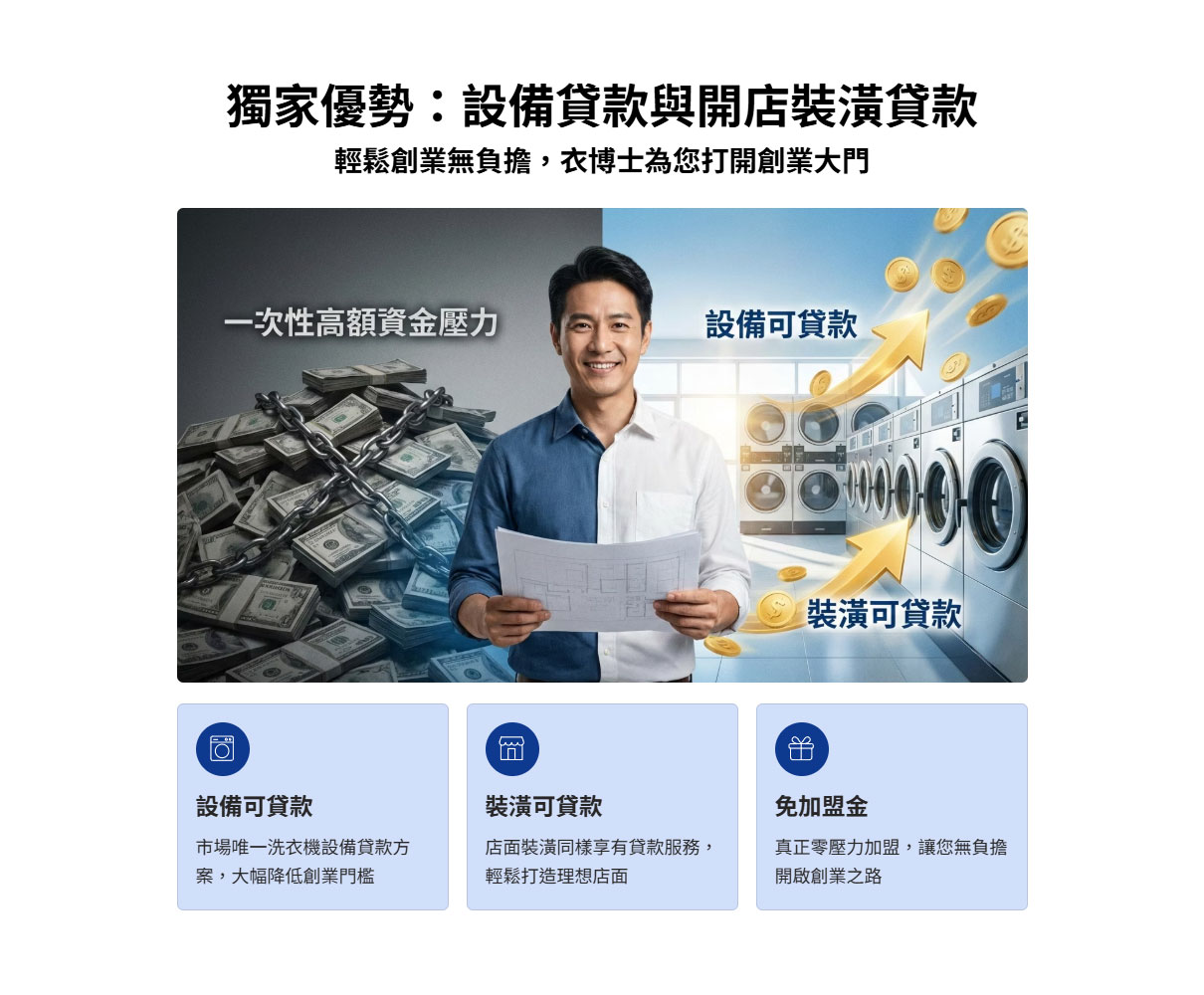 衣博士自助洗衣加盟|免加盟金 × 設備可貸款 × 一條龍開店服務